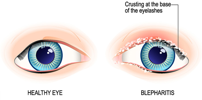 Blepharitis is an inflammation of the eyelids in which they become red, irritated and itchy with dandruff-like scales that form on the eyelashes. It is a common eye disorder caused by either bacteria or a skin condition, such as dandruff of the scalp or rosacea.