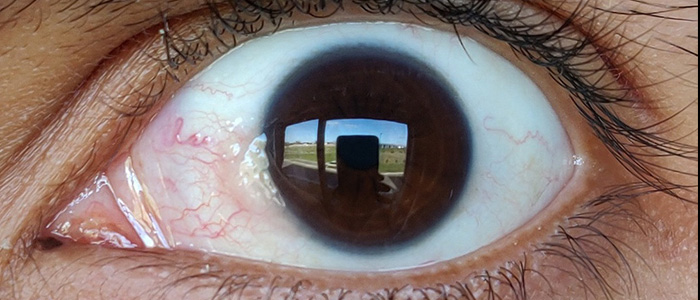 Keratoconus is an eye condition that affects the shape of the cornea, which is the clear outer covering of the eye. In this condition, the cornea thins and bulges outward, eventually resembling a cone shape. These corneal abnormalities, which worsen over time, can lead to nearsightedness (myopia), blurred vision that cannot be improved with corrective lenses (irregular astigmatism), and vision loss.